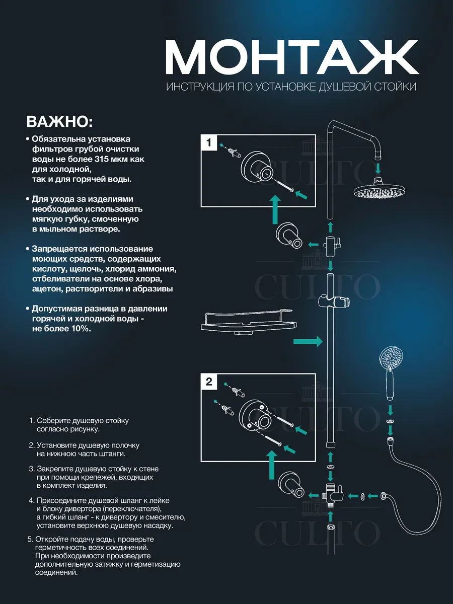 Настенный смеситель с покрытием хром станет ярким акцентом в любой комнате. Лейка, установленная на штанге, легко регулируется, обеспечивая удобство использования. Стойка с держателем надежно фиксирует лейку, а система позволяет настраивать высоту в зависимости от ваших предпочтений. Этот гарнитур идеально дополнит вашу ванную и создаст атмосферу уюта и стиля.