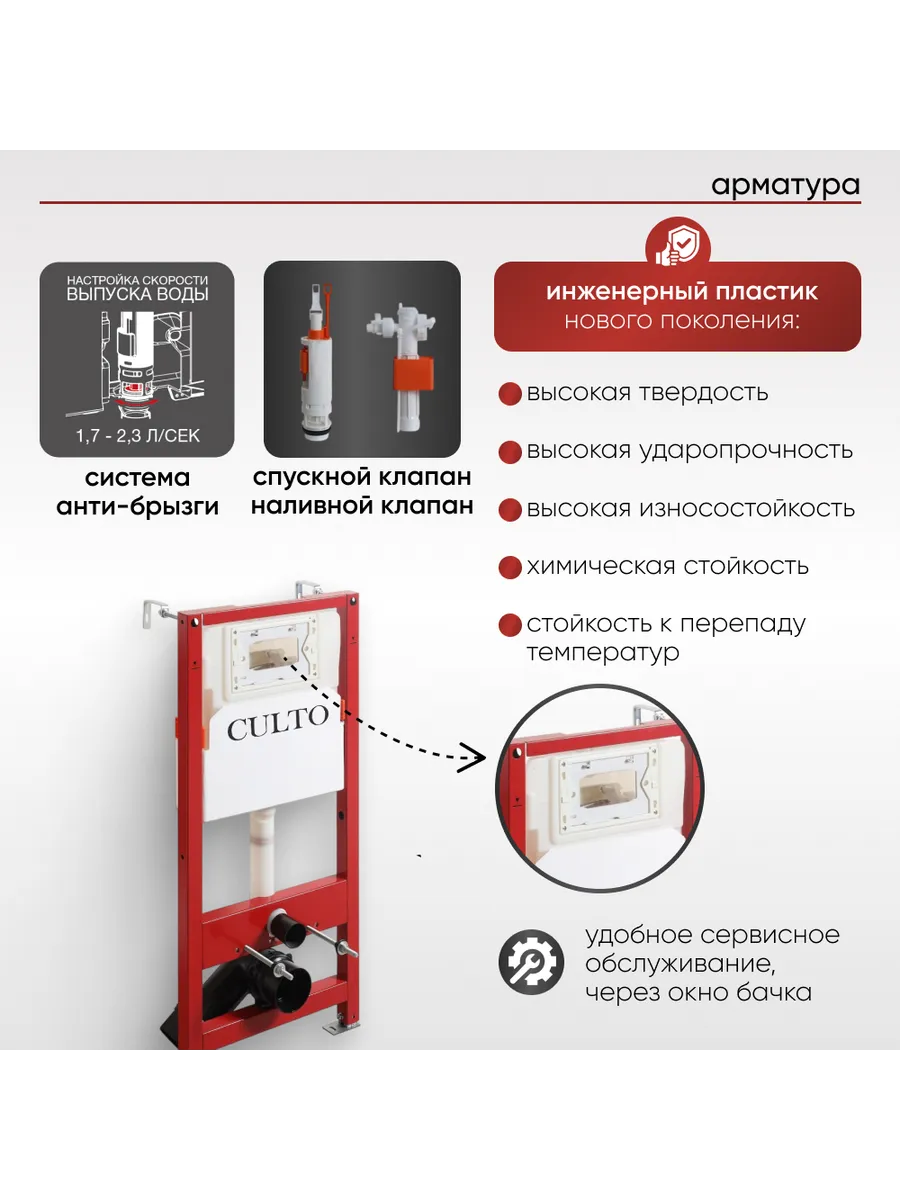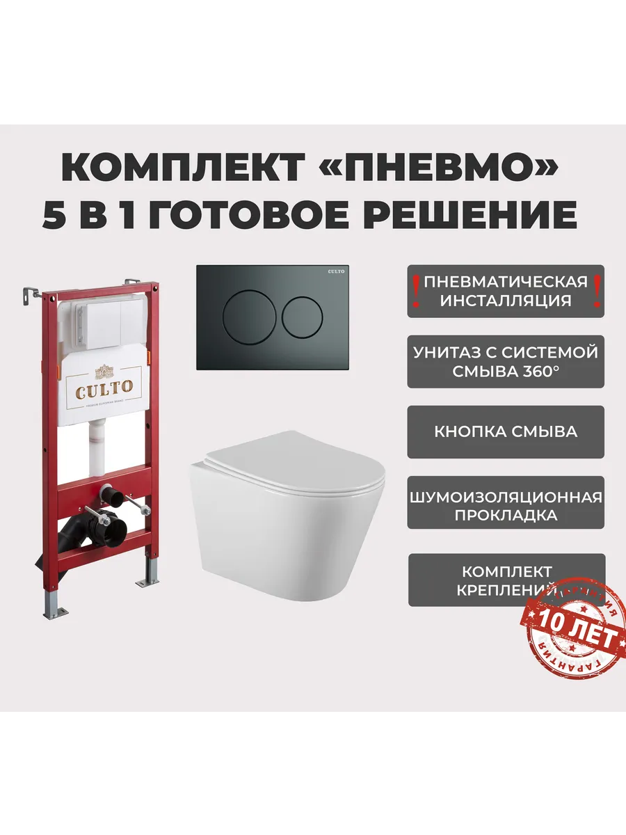 Инсталляция пневматическая с подвесным унитазом MONEY — это стильное и функциональное решение для современного санузла. Модель оснащена панелью смыва цвета металл, которая гармонично впишется в любой интерьер. Система смыва обеспечивает мощный и эффективный смыв, а пневматический механизм гарантирует тихую и плавную работу. Инсталляция CULTO отличается надежностью, долговечностью и простотой в обслуживании, что делает ее идеальным выбором для комфортного и практичного санузла.