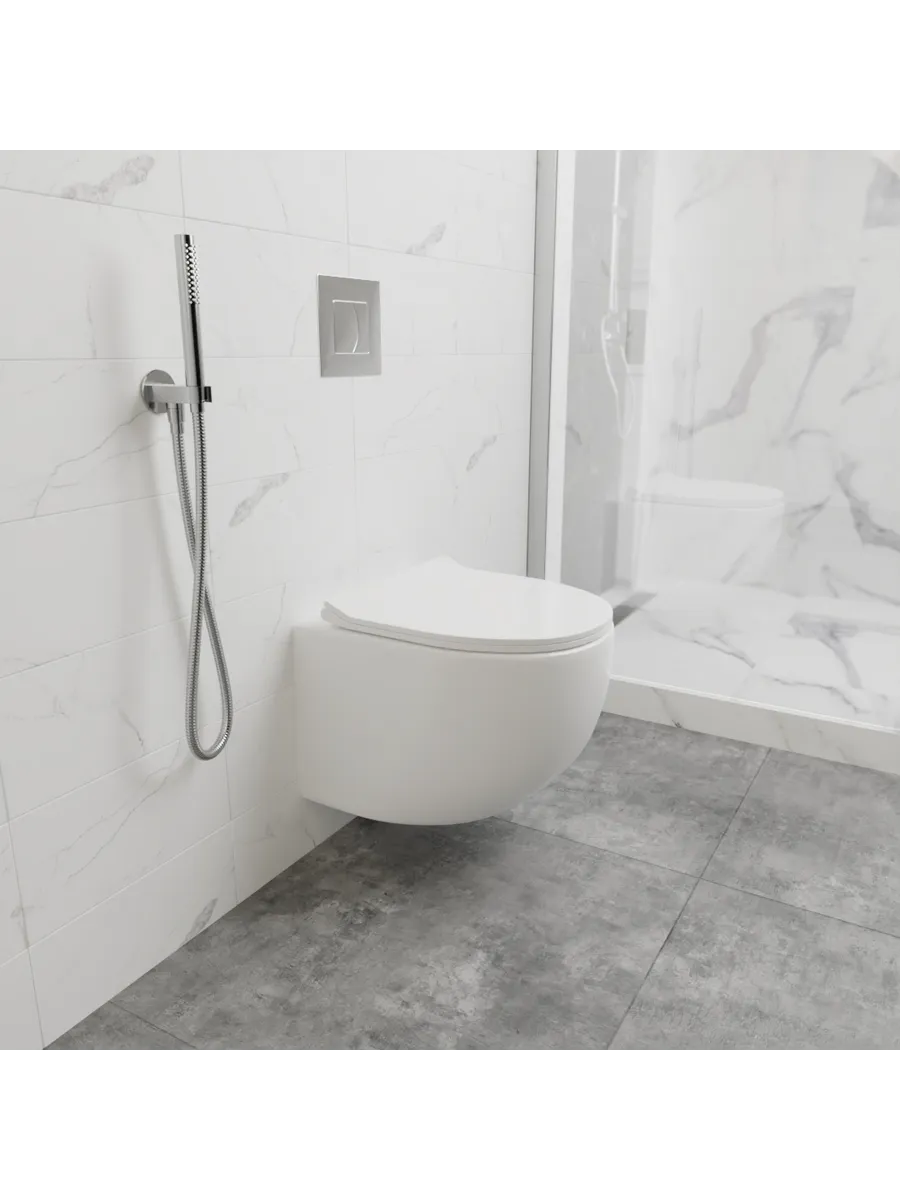 Безобродковая чаша унитаза оснащена сиденьем из дюропласта с быстросъемным механизмом и идеальным дизайном