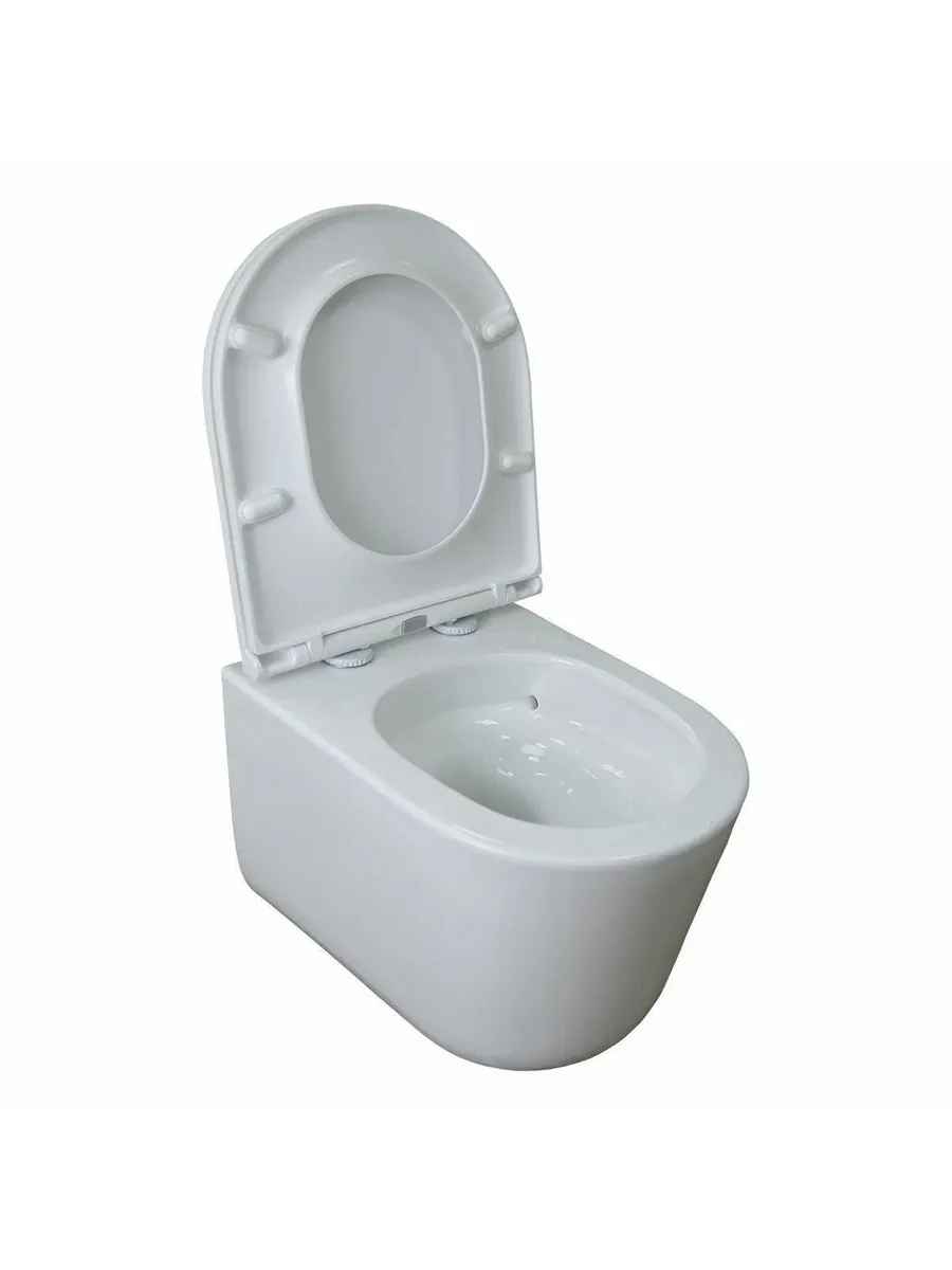 Безобродковая чаша унитаза оснащена сиденьем из дюропласта с быстросъемным механизмом и идеальным дизайном