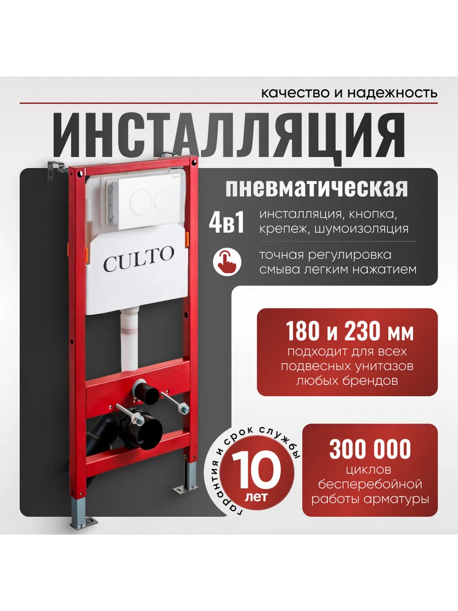 Панель смыва пневматическая CULTO Pnevmo белого цвета совместима с инсталляцией c пневматическим смывом воды арт. 365196594