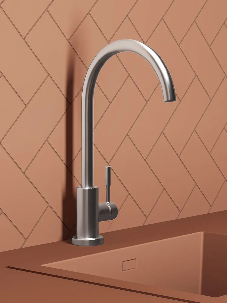 Смеситель для кухни CULTO OPTIMA KI01OT с высоким поворотным изливом, подойдет всем ценителям современного дизайна и надежности конструкции. Однорычажный кран для кухни изготовлен из нержавеющей стали 304 с усиленным покрытием, что обеспечивает долговечное использование, защиту от сколов и ржавчины. Данная марка стали рекомендована для использования в медицинской и пищевой промышленности. Кухонный смеситель оснащен керамическим картриджем, что гарантирует долговечность использования. В комплект смесителя для раковины входит встроенный аэратор. Излив смесителя для кухни имеет широкий угол поворта, что позволяет использовать кран на две кухонные мойки. Смеситель для раковины имеет гибкую подводку 45см, которая входит в комплект вместе с монтажным набором для удобной и быстрой установки крана. Смеситель для кухонной мойки имеет уникальный дизайн и походит к любому кухонному гарнитуру. Кран устанавливается на гайку для предотвращения разбалтывания смесителя в процессе использования. Данный метод крепления позволяет значительно сократить вероятность возникновения течей и продлить срок службы крана. Продукция компании CULTO проходит контроль качества и изготавливается в соответствии с высокими международными стандартами. Гарантия производителя 10 лет.