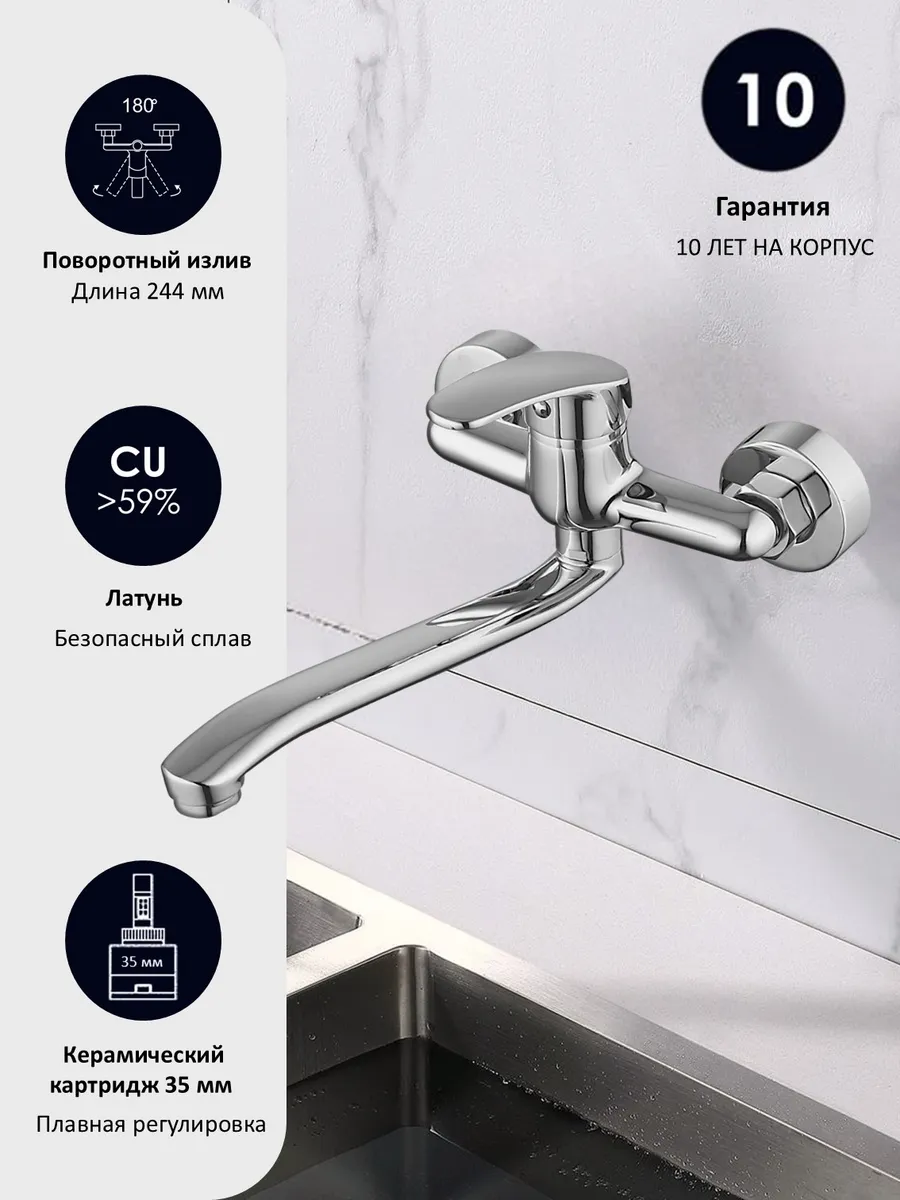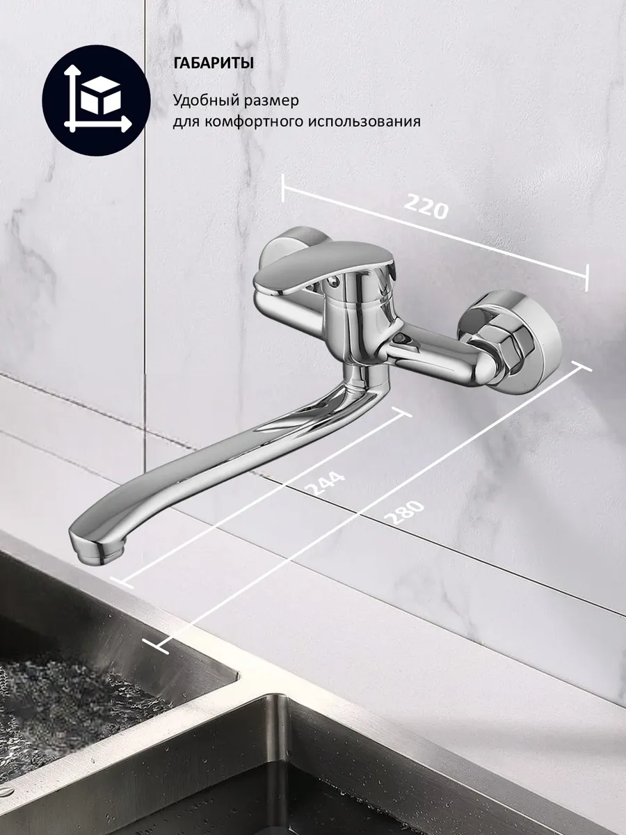 Смеситель для раковины и кухонной мойки с длинным изливом SPIKE подойдет всем ценителям классического дизайна и надежности конструкции. Двухвентильный смеситель изготовлен из цинка с хромированием, что обеспечивает долговечное использование. Смеситель оснащен керамической кран-буксой, что гарантирует простоту и долговечность в использовании. В комплект смесителя для раковины входит встроенный аэратор. Универсальный смеситель имеет гибкий подвод, который входит в комплект вместе с монтажным набором для удобной и быстрой установки крана. Гусак для смесителя позволяет комфортно работать с емкостями любого размера. Кухонный смеситель имеет классическое управление двумя кранами- двухвентильный смеситель. Продукция проходит контроль качества и изготавливается в соответствии с высокими международными стандартами.