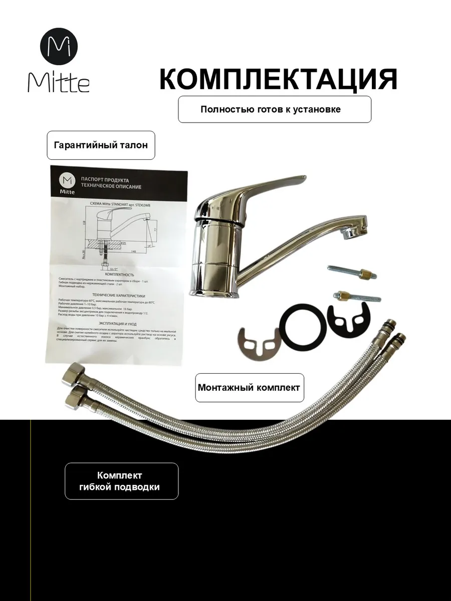 Смеситель для раковины и умывальника MITTE серии STANDART подойдет всем ценителям классического дизайна и надежности конструкции. Однорычажный кран для раковины в ванную изготовлен из цинка с хромированием, что обеспечивает долговечное использование и легкость в эксплуатации. Кран на раковину в ванную оснащен керамическим картриджем, что позволяет не устанавливать прокладки-уплотнители. В комплект смесителя на мойку входит встроенный аэратор, который рассекает поток на множество мелких и насыщает воду кислородом. Смеситель для умывальника имеет гибкую подводку длиной 35см, которая входит в комплект вместе с монтажным набором для удобной и быстрой установки крана. Смеситель для раковины и умывальника обладает уникальным дизайном и станет незаменимым аксессуаром в ванную комнату. Продукция компании CULTO проходит контроль качества и изготавливается в соответствии с высокими международными стандартами. Гарантия производителя 10 лет.