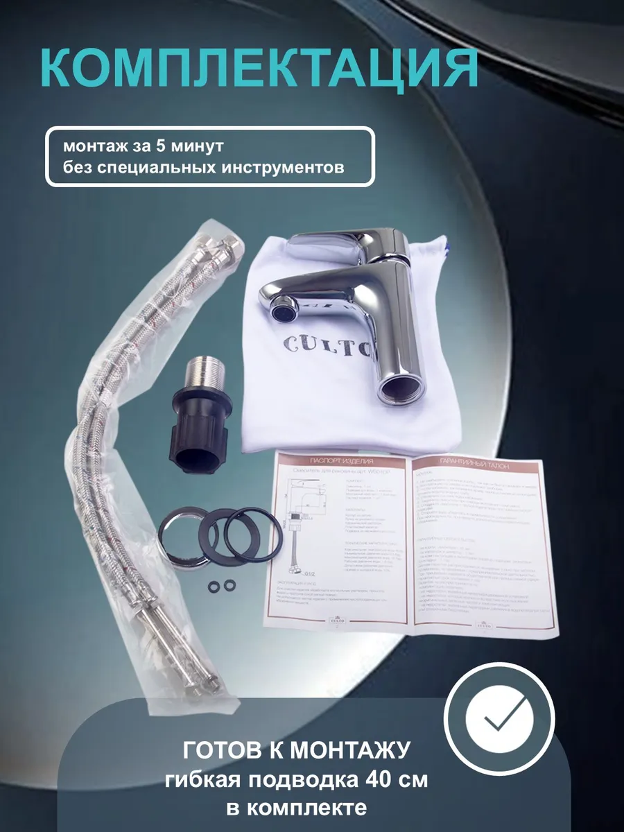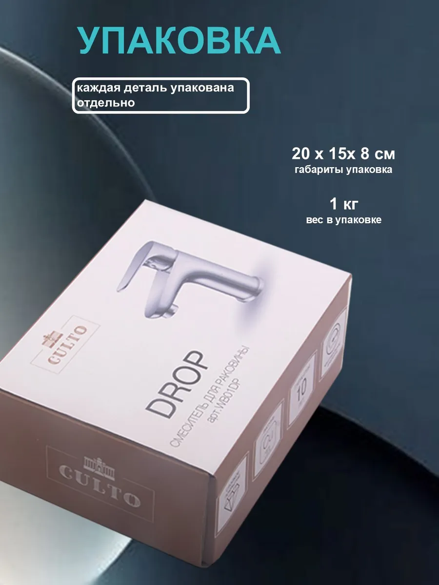 Оригинальный смеситель для раковины от бренда Culto из коллекции Drop – это идеальное решение для обновления вашей кухонной или ванной зоны. Смеситель для раковины обладает четкими линиями и массивным дизайном. Корпус однорычажного смесителя изготовлен из латуни с хромированным покрытием, что обеспечивает долговечное использование без царапин и сколов. Кран на раковину в ванную оснащен керамическим картриджем, что позволяет не устанавливать прокладки-уплотнители и продлевает срок службы крана. В комплект смесителя для раковины входит встроенный аэратор, который рассекает поток на множество мелких и насыщает воду кислородом. Смеситель для умывальника имеет гибкую подводку длиной 35см (2шт), которая входит в комплект вместе с монтажным набором для удобной и быстрой установки крана. Смеситель для раковины и умывальника обладает уникальным дизайном и станет незаменимым аксессуаром в ванную комнату. Продукция компании CULTO проходит контроль качества и изготавливается в соответствии с высокими международными стандартами. Гарантия производителя 10 лет.