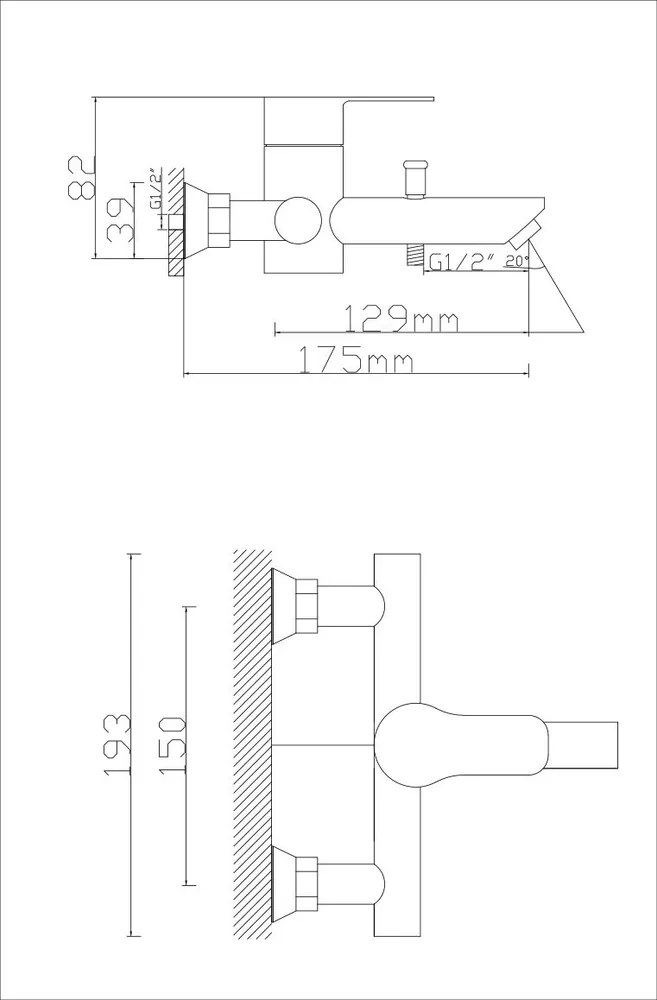 смеситель, душевой комплект (лейка, шланг, крепление), монтажный набор