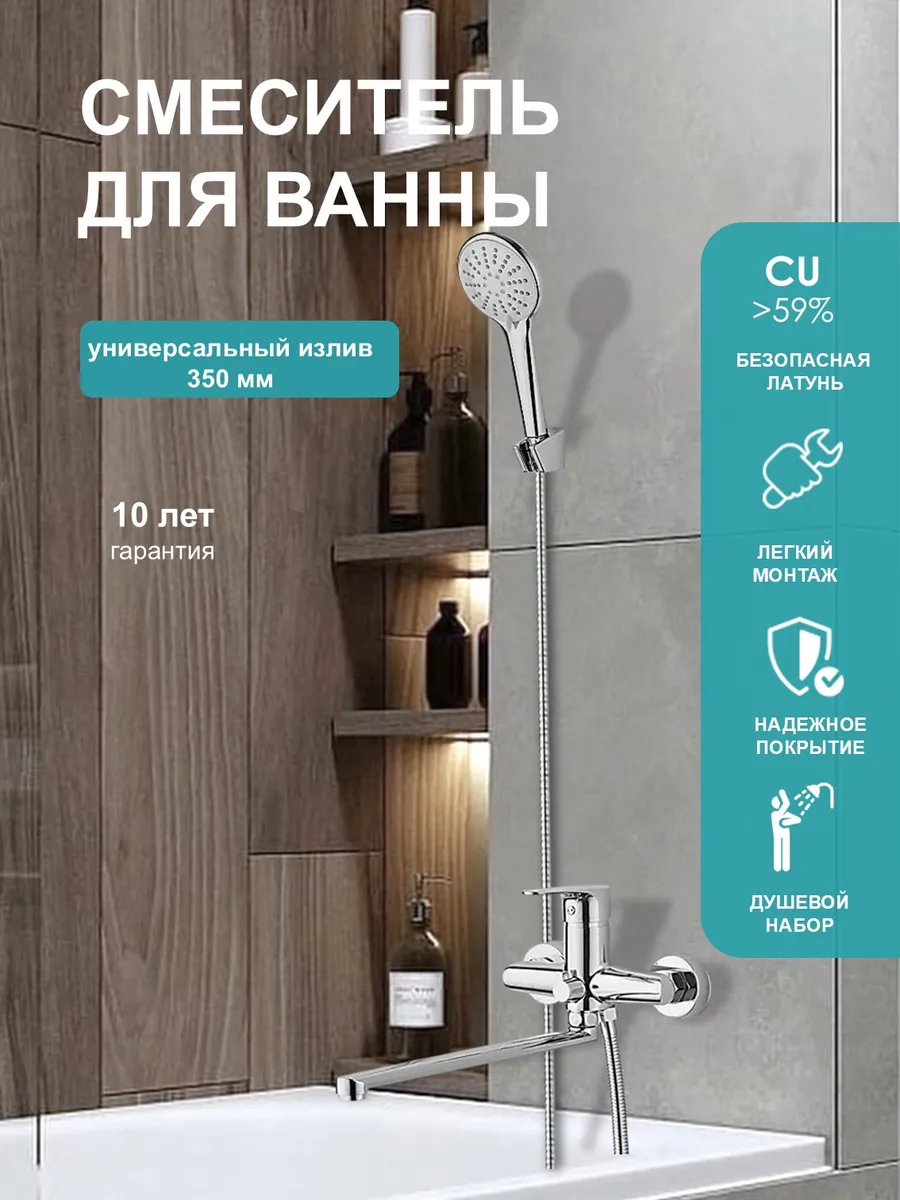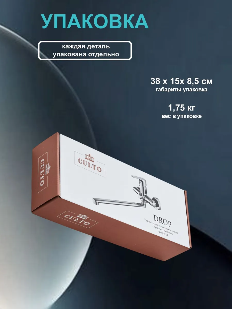 Смеситель для ванны с душевым гарнитуром CULTO DROP подойдет всем ценителям классического дизайна и надежности конструкции. Однорычажный смеситель для душа изготовлен из латуни с защитным покрытием, что обеспечивает долговечное использование и защиту от сколов и образования ржавчины. Смеситель для ванны и душа обладает более толстым верхним покрытием, в сравнении с аналогами. Смеситель для ванны и душа оснащен керамическим картриджем, что гарантирует простоту и долговечность в использовании. В комплект смесителя для ванной входит встроенный аэратор который рассекает водный поток на множество мелких, насыщает его пузырьками воздуха и создает мягкую, чистую струю воды без брызг и ограничивает поток подаваемой воды, без ущерба для интенсивности и напора струи. В комплект смесителя для ванной комнаты входит лейка для душа с тремя режимами и удобным переключателем между режимами душа, шланг для душа длиной 150см, настенный держатель лейки и монтажный набор для удобной, быстрой установки крана. Продукция компании CULTO проходит контроль качества и изготавливается в соответствии с высокими международными стандартами. Гарантия производителя 10 лет.