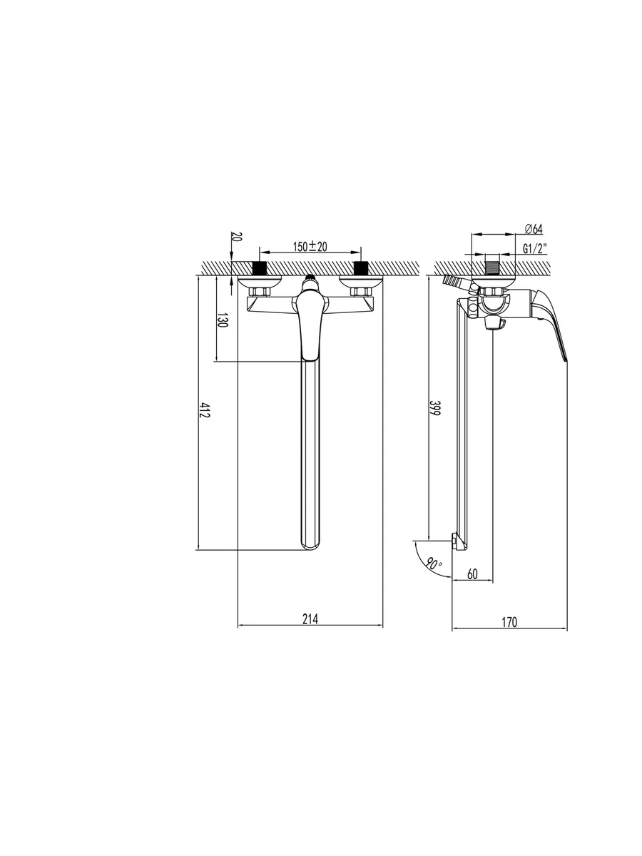 Однорычажный смеситель CULTO из коллекции GO с длинным изливом для ванны, без душевого набора.
