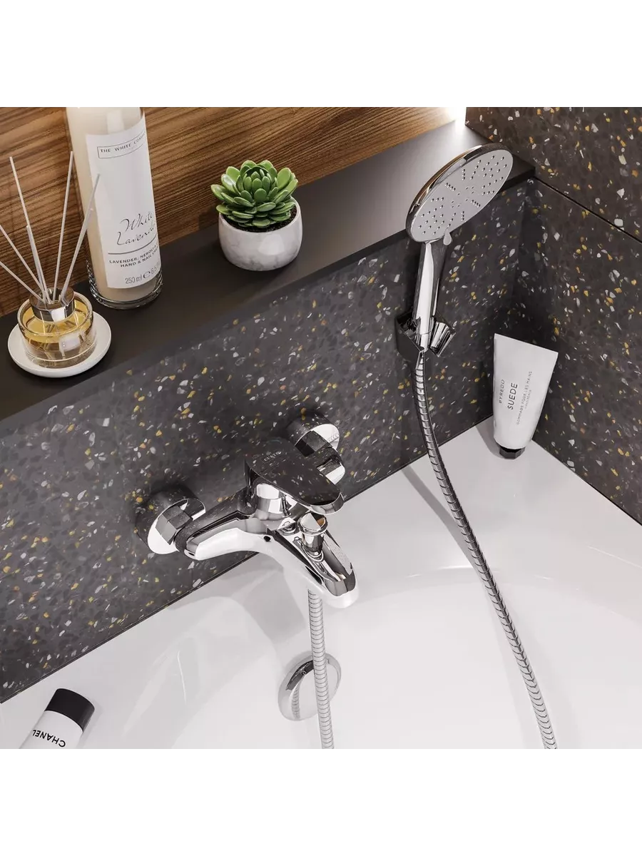 смеситель, душевой комплект (лейка, шланг, крепление) , монтажный набор